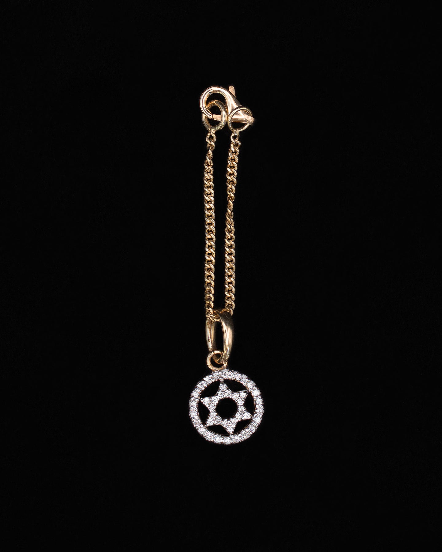 A timeless symbol of faith and protection, elevated with diamonds. Crafted in 14kt gold, this Star of David charm is outlined in pavé set diamonds for radiant sparkle. Designed with a secure lobster clasp, it hangs gracefully from your watch or bracelet, keeping meaning and light close at hand.